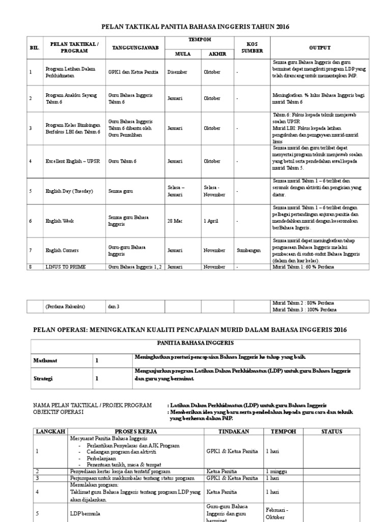 Pelan Taktikal Panitia Bahasa Inggeris Tahun 2016 Pdf
